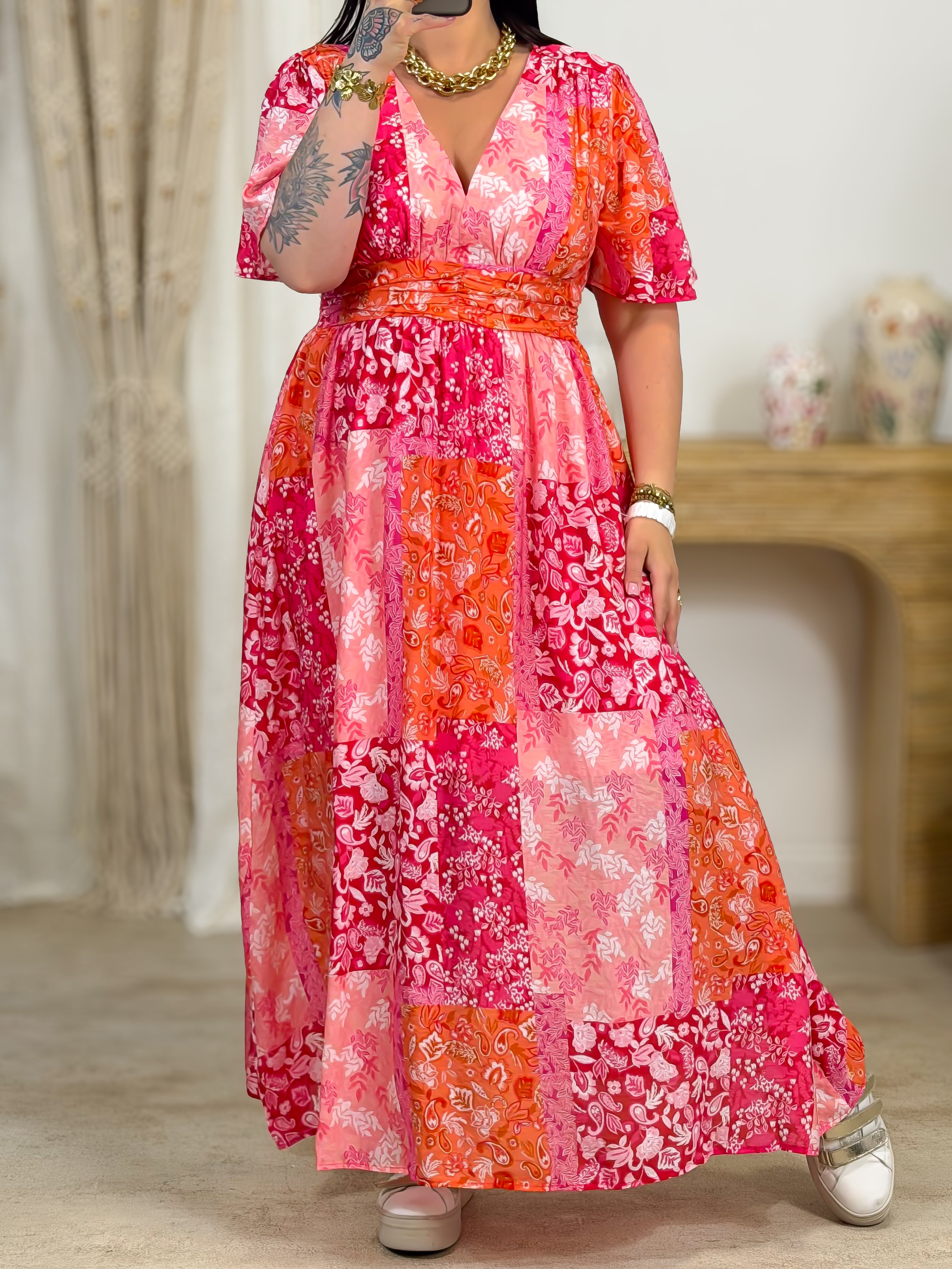 Robe Longue - Kalina - Fuchsia & Orange / PRÉVENTE 14.04 /